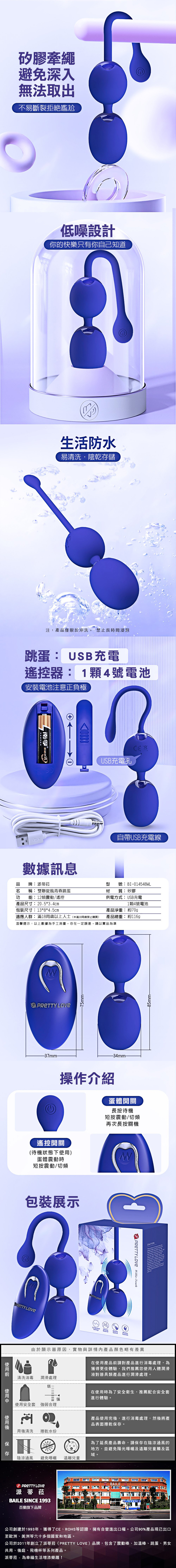 【商品簡介】 用途:女性自慰之用 材質:熱塑性彈性體+樹脂 規格:電壓3.7V震動/12頻 電源:主體/USB充電,遙控器/4號電池x1顆 淨重:約70g 總重:約116g 尺寸:跳蛋:長8.5x直徑3.4x直徑3.4cm,直徑約3.4cm.....