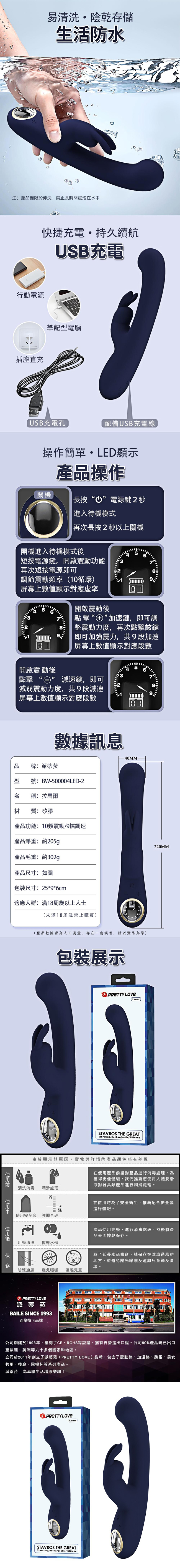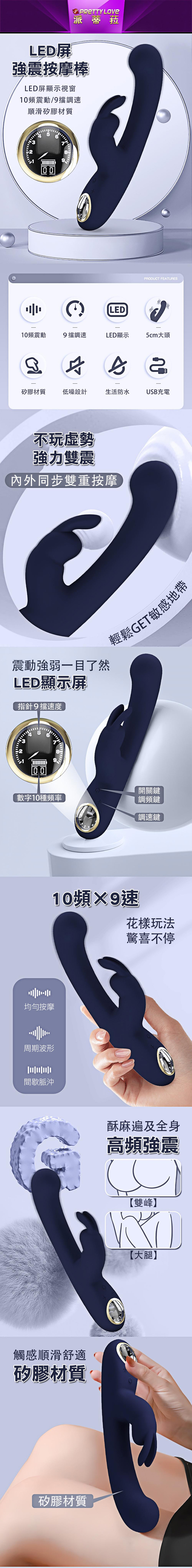 【商品名稱】 拉馬爾10x9頻液晶雙震動棒-藍