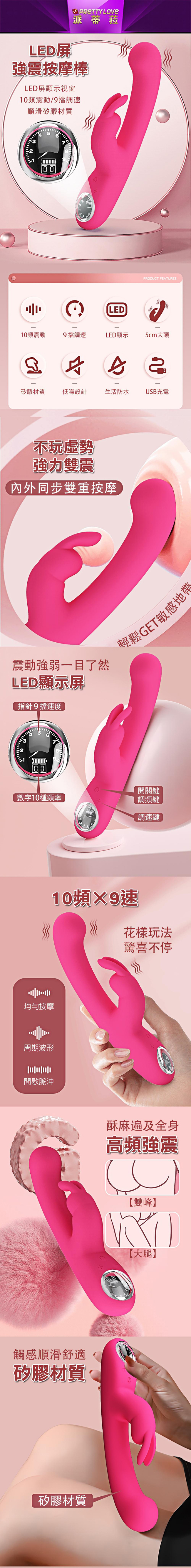 【商品名稱】 拉馬爾10x9頻液晶雙震動棒-粉