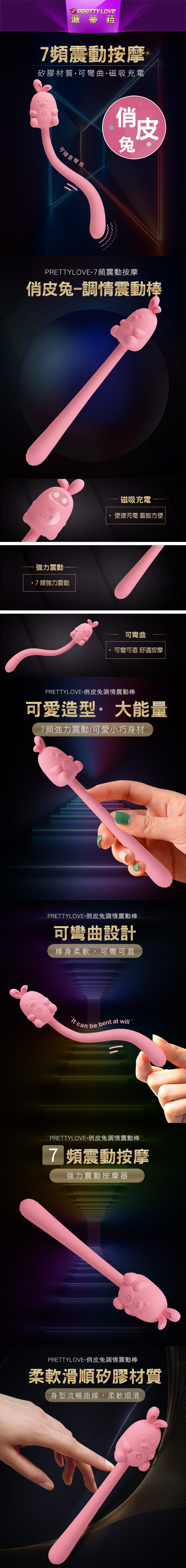 【商品名稱】 俏皮兔可彎折7頻震動器-粉