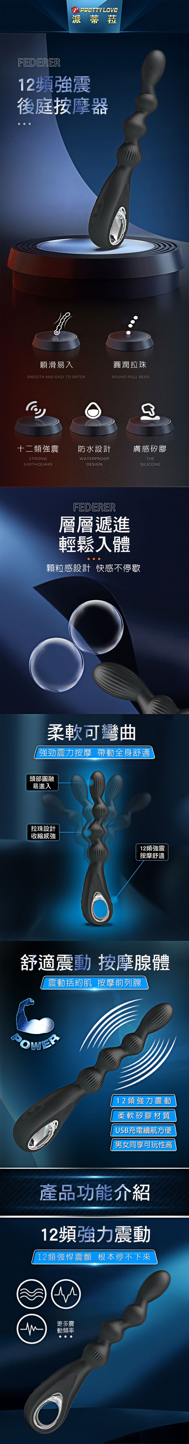 【商品名稱】 費德勒圓潤12頻後庭震動拉珠