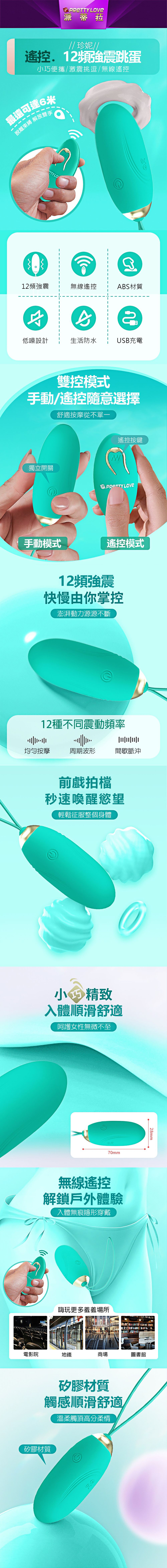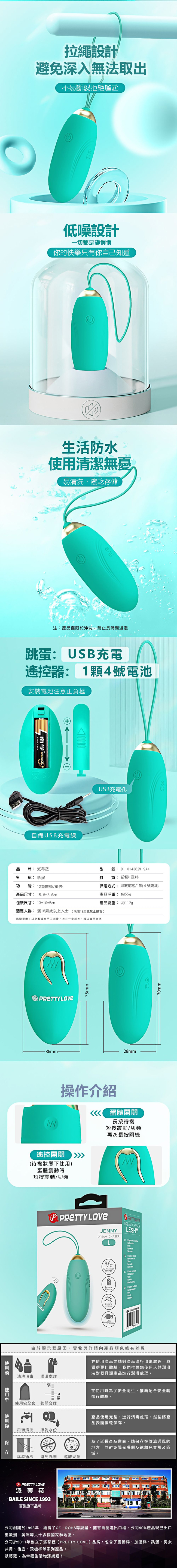 【商品名稱】 珍妮追夢者12頻遙控跳蛋-綠