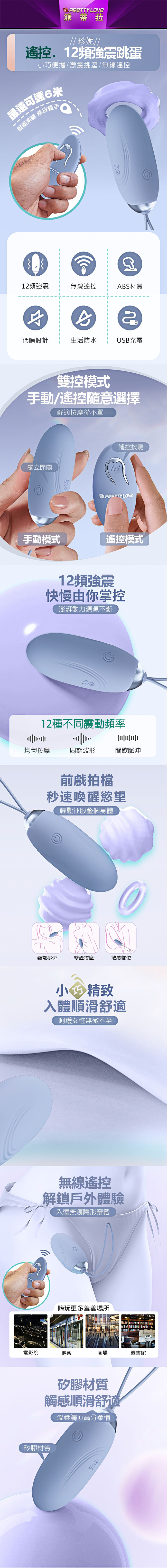 【商品名稱】 珍妮追夢者12頻遙控跳蛋-紫