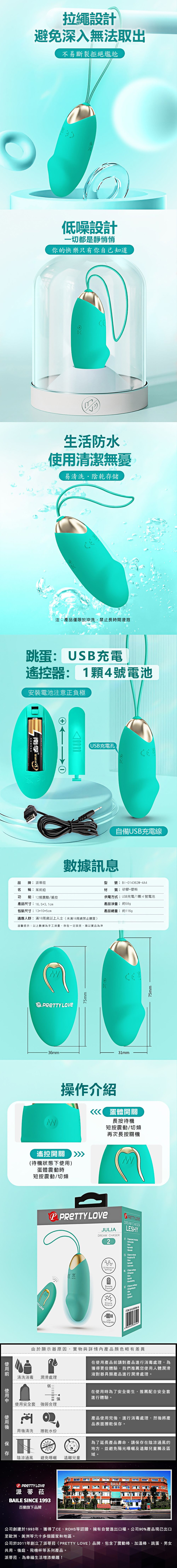 【商品名稱】 茱莉婭追夢者12頻遙控跳蛋-綠