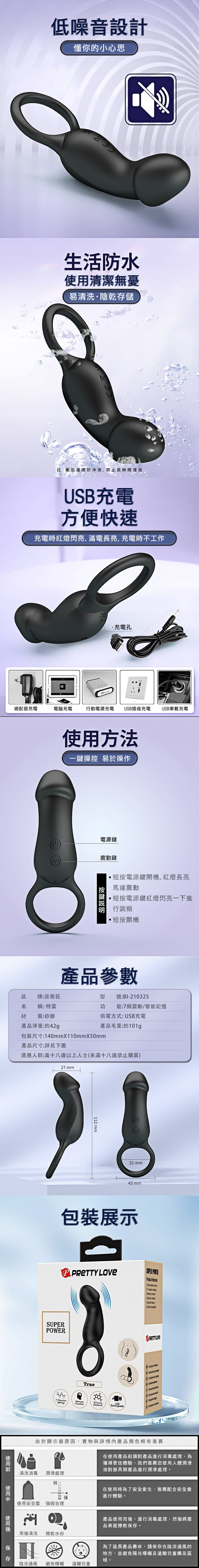 【商品簡介】 用途:男女情趣之用 材質:熱塑性彈性體+樹脂 規格:電壓3.7V震動/7頻 電源:USB充電.....