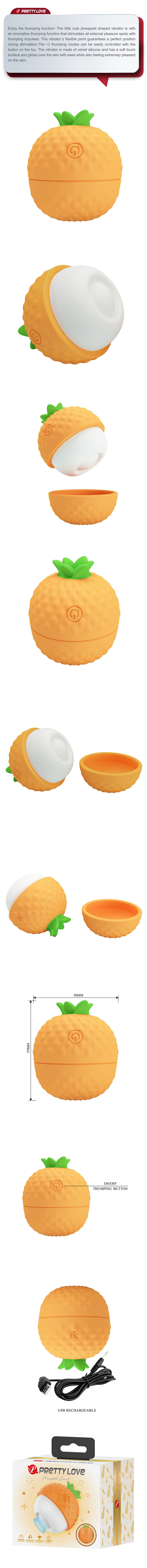 【商品簡介】 享受砰砰的功能!這款小巧可愛的鳳梨形震動器具有創新的捶擊功能,可透過捶擊脈衝刺激所有外部快感點。振動器的靈活點可確保刺激期間的完美位置。 12 種重擊模式可以透過玩具上的按鈕輕鬆控制。.....