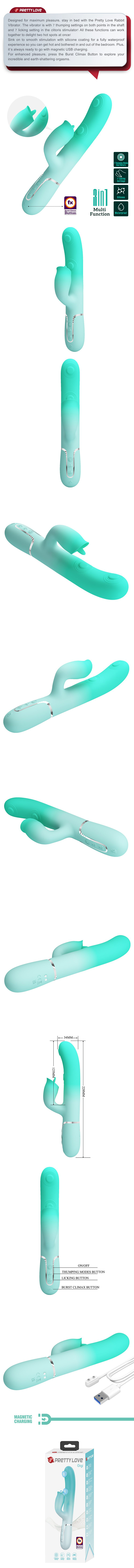 【商品簡介】 專為最大程度享受而設計,使用 Pretty Love Rabbit 振動器躺在床上。振動器在軸的兩個點上具有 7 種重擊設置,在陰蒂刺激器上具有 7 種舔舐設置!所有這些功能可以協同工作,同時滿足兩個熱點的需求!.....