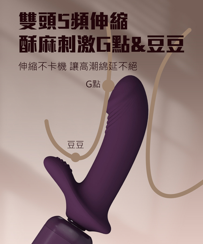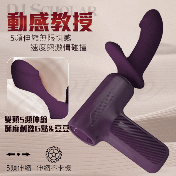 【商品名稱】 DJ Scholar動感教授 5段變頻雙頭酥麻USB充電式伸縮按摩棒-紫