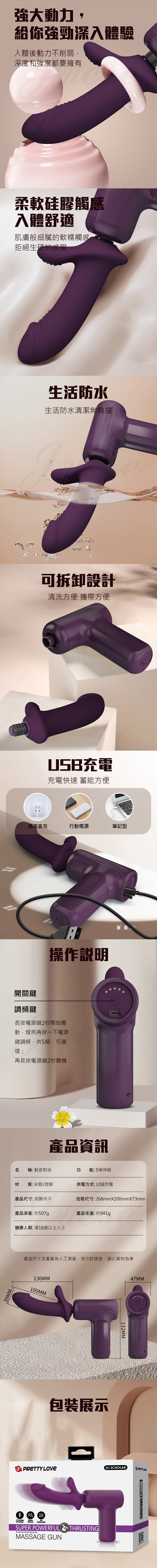 【商品簡介】 這款超強力按摩槍具有 5 種推力設置和可更換的矽膠頭,最重要的是按摩槍內最強大的馬達將為您帶來最強大的色情體驗和令人難以置信的振動和推力感覺.....