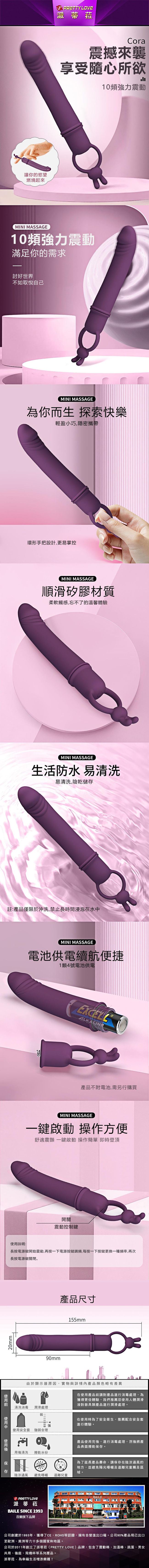 【商品簡介】 用途:女性自慰之用 材質:熱塑性彈性體 規格:電壓1.5V震動/10頻 電源:4號電池x1顆 淨重:約41g 總重:約76g.....
