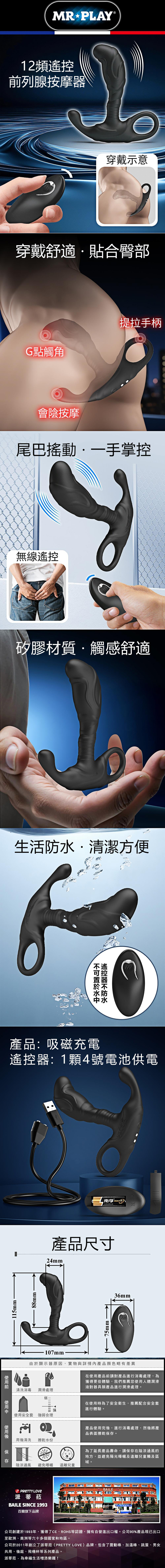 【商品簡介】 用途:男女情趣之用 材質:熱塑性彈性體+樹脂 規格:電壓3.7V震動/12頻 電源:主體/USB充電,遙控器/4號電池x1顆 淨重:約86g 總重:約200g.....