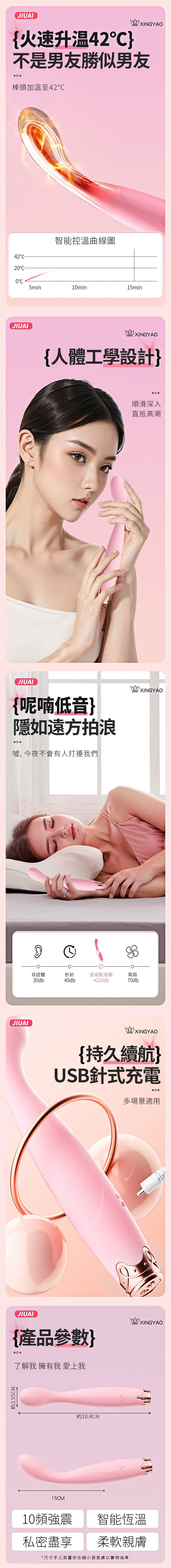 【商品名稱】 星瑤智能8頻G點潮加溫震動棒-粉