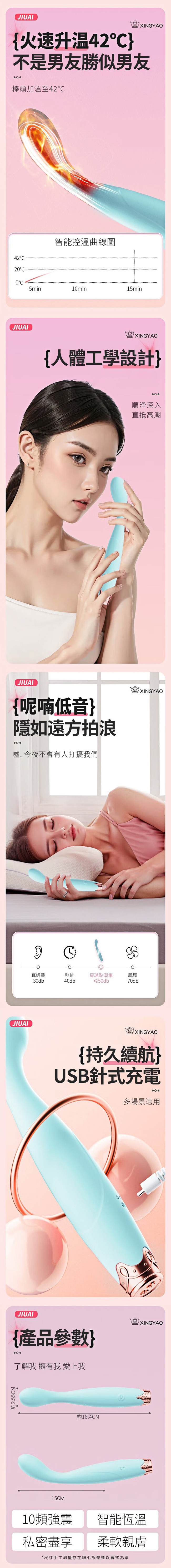 【商品名稱】 星瑤智能8頻G點潮加溫震動棒-藍