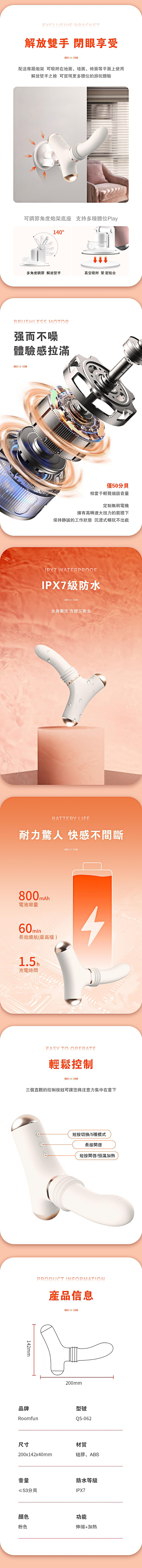 【商品名稱】 澎湃5頻遙控伸縮震加溫吸盤炮機