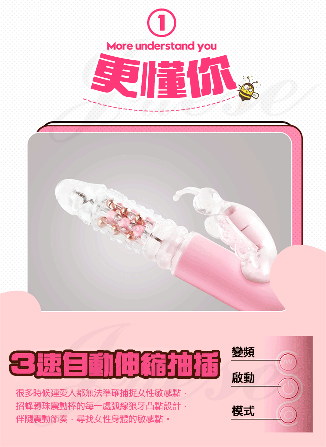 規格:電壓1.5V震動 / 3頻伸縮旋轉×12頻震動