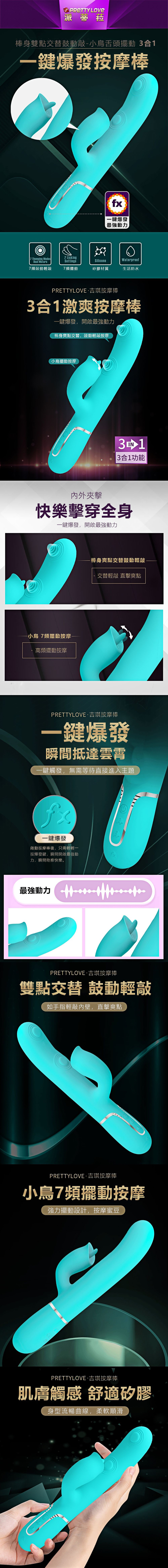 【商品名稱】 派蒂菈-吉琪舌舔7x7頻雙鼓震動棒-綠