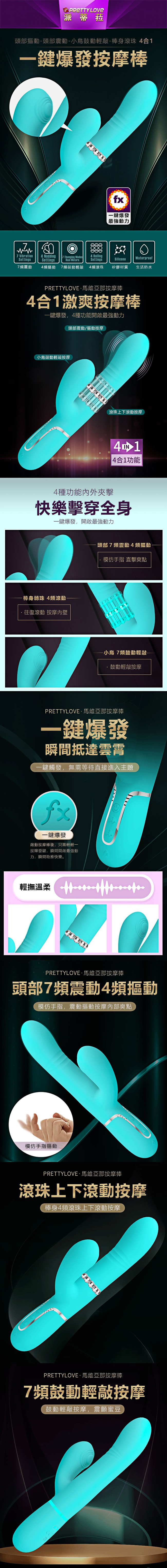 【商品名稱】 派蒂菈-馬維亞那7x4頻鼓動滾珠震棒-綠