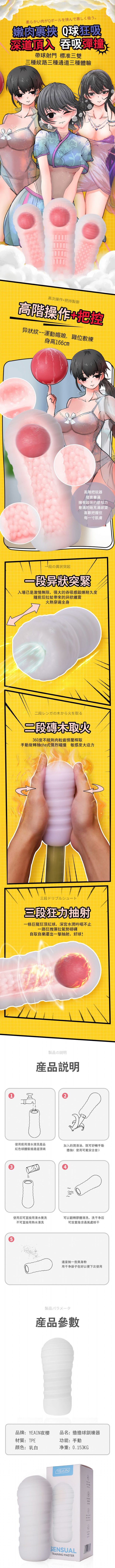 【商品簡介】 嫩肉裹挾,Q球狂吸!深道頂入,吞吸彈撞! 發育豐滿,強大吞吸感鍛鍊耐久度,一擊抽射好球! 異狀紋--運動媚娘 訓練階段: 高階操作+把控 153g 非貫通式 小巧尺寸 彈力矽膠 附贈紅色Q球.....
