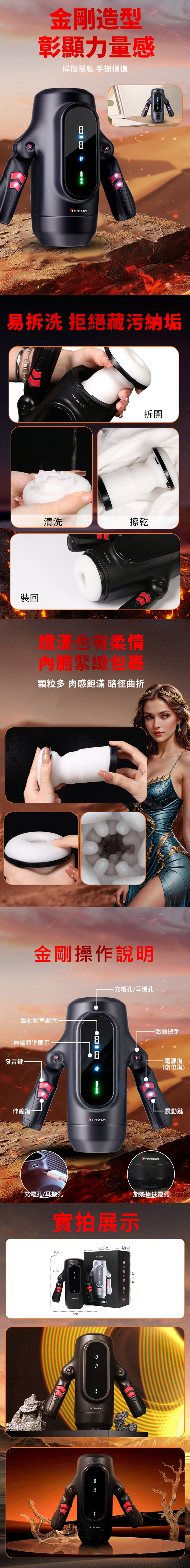 金剛飛機杯的外型採用的是黑金剛造型,寓意每個男人都孔武有力充滿力量,同時隱密性極強,可當做裝飾的手辦一舉兩得,在手柄上加以按鍵控制,使用起來猶如開機車,一場速度與激情的飆車體驗一觸即發,也滿足每個男人的機車夢;功能上伸縮+震動+發聲,配上自己主宰方向盤的飆車感,一路高潮唾手可得! !