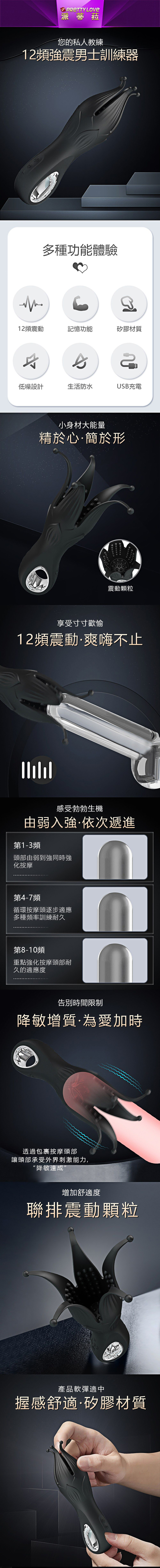 【商品名稱】 阿雷拉12頻龜頭強震鍛鍊自慰器