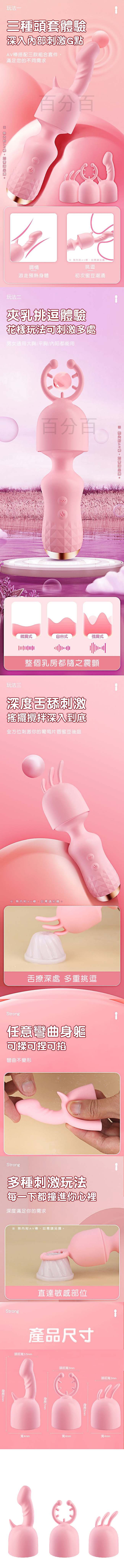 【商品簡介】 .三種款式享受不乏味 .多種玩法輕鬆體驗 .深入刺激、輕嚐快感 .如需AV棒,請另購無內附。.....