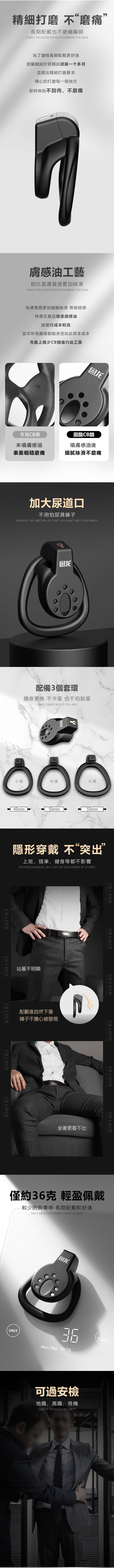 【商品簡介】 用途:男性穿戴之用 材質:樹脂 規格:安全設計 淨重:約88g 總重:約149g 尺寸:長8.8x寬7.2x深3.4cm(裝上大環尺寸) 外盒尺寸:12.5x11.2x8.7cm 備註:內附中環x1、小環x1、鑰匙x2、說明卡.....