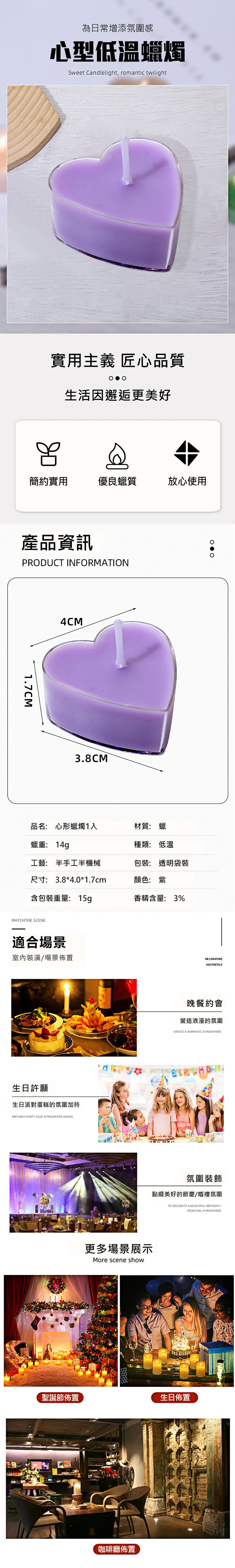【商品名稱】 心型低溫蠟燭-紫
