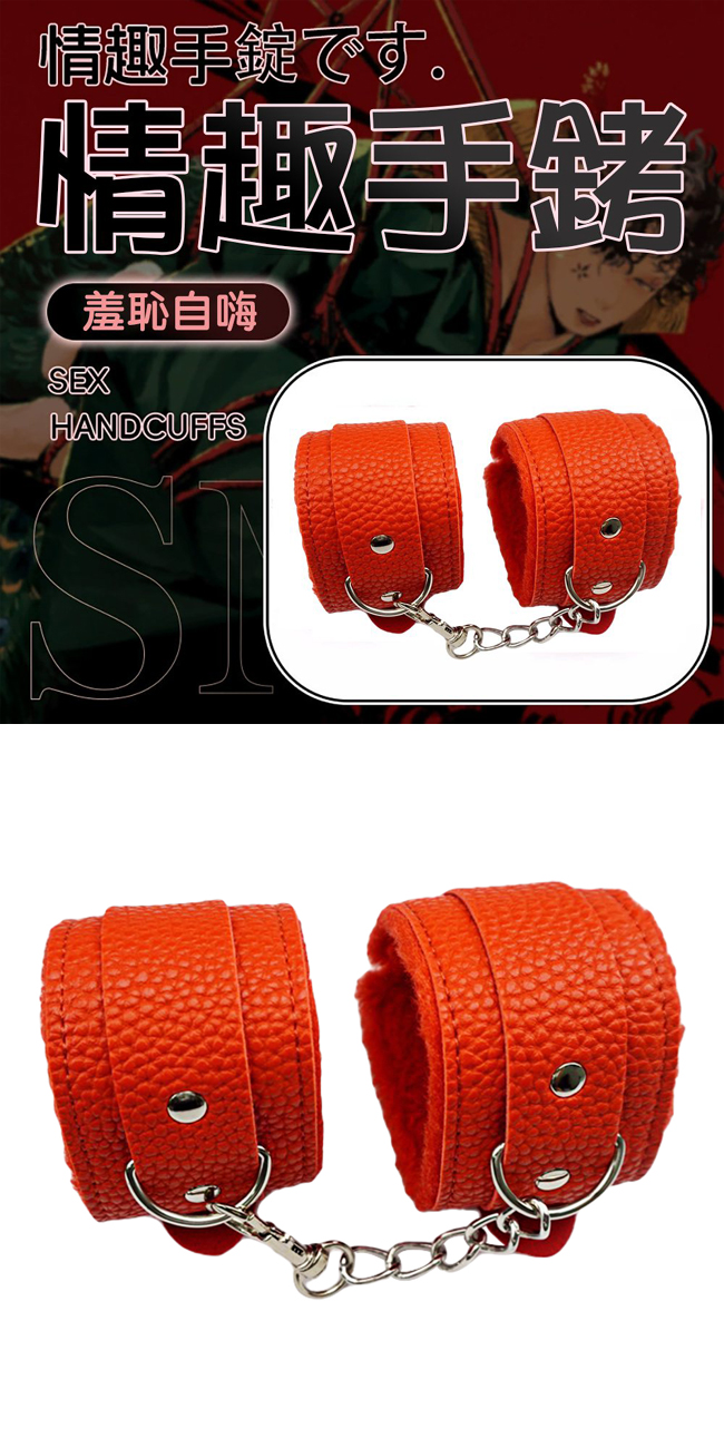 【商品名稱】 SM皮革紋理毛絨手銬-紅