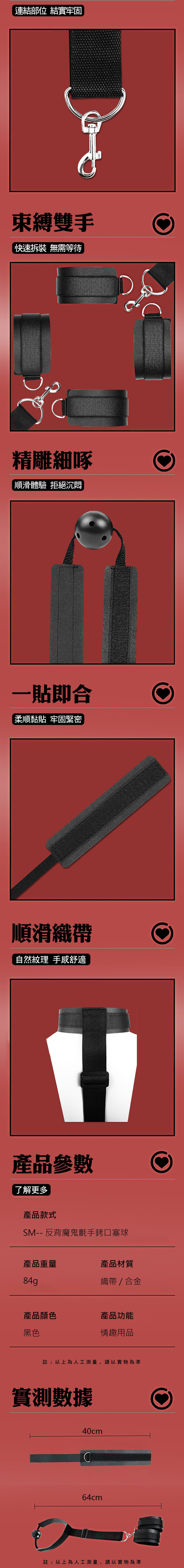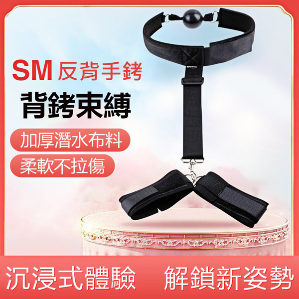 【商品名稱】 SM反背魔鬼氈手銬口塞球-黑色