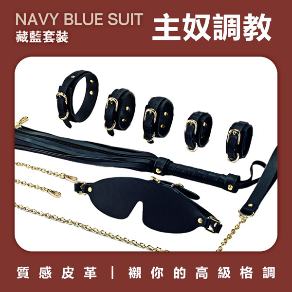 【商品名稱】 主奴調教皮革束縛6件套-藏藍色