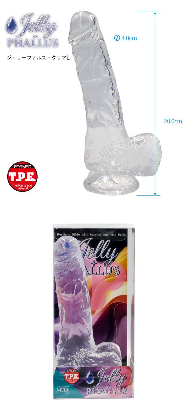 【商品名稱】 日本MODE果凍透明逼真老二按摩棒(L)