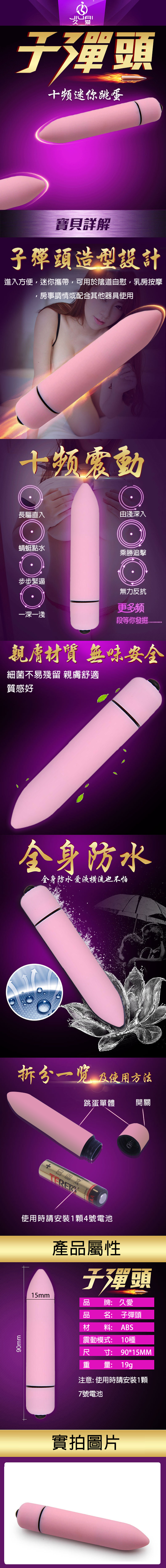 【商品名稱】 時尚調情10頻子彈頭跳蛋-粉