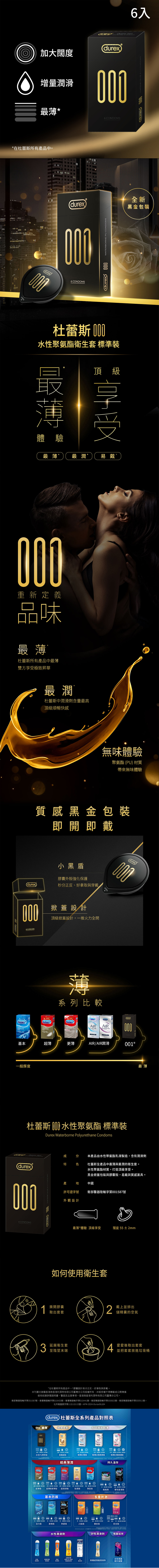 【商品名稱】 【杜蕾斯Durex】001水性聚氨酯標準裝保險套衛生套安全套避孕套6入