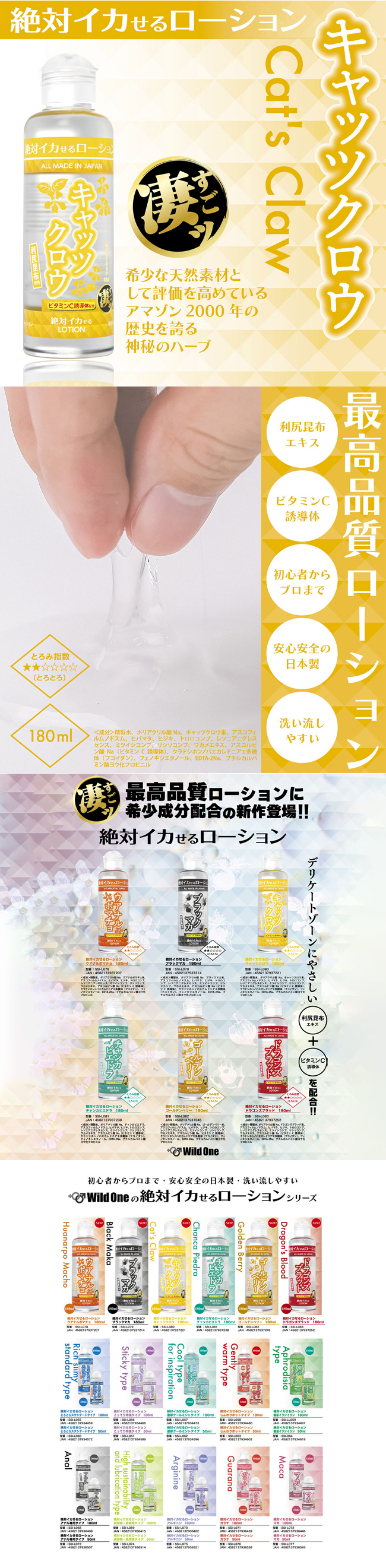 【商品名稱】 日本SSI JAPAN絕對系列第三彈貓爪藤高潮潤滑液180ml 水溶性潤滑液