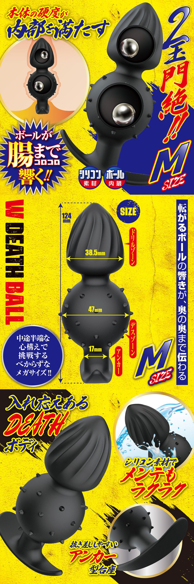 這款Plug Death內建兩顆球體,讓您在感受滾珠在體內深處迴盪的同時,享受擴張和發育的快感。