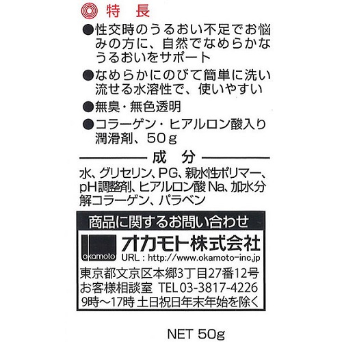 コンドームのメーカーの『オカモト』の潤滑ゼリーなので、 勿論コンドームとの併用も問題ありません。 コラーゲンやヒアルロン酸などの潤い成分配合で、女性の方にもオススメ。