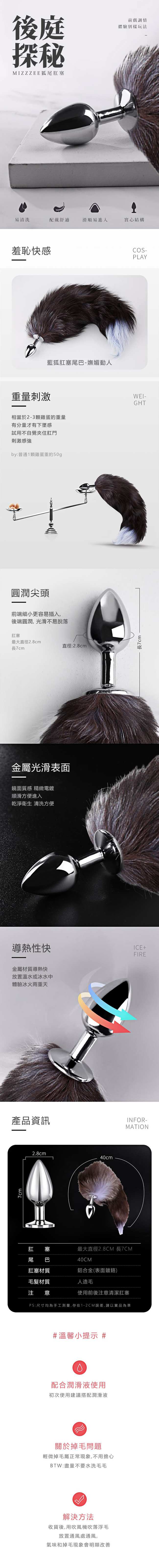 【商品名稱】 藍狐尾巴金屬肛塞-小