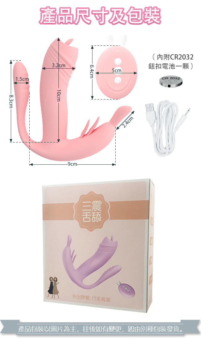 【商品簡介】 用途:女性自慰之用 材質:矽膠+塑膠 規格:電壓1.5V震動/12頻 電源:主體:USB充電/遙控器:R2032水銀電池x1 淨重:約142g 總重:約230g 尺寸:12x11.5x5cm,可深入長約9.5cm 最大徑約3.3.....