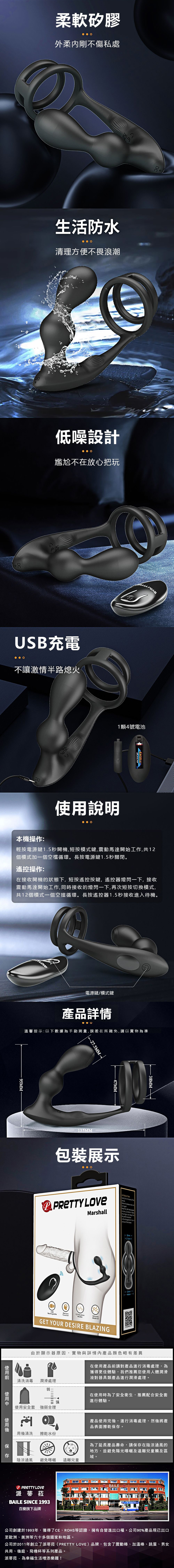 【商品名稱】 馬歇爾12頻遙控後庭震動套環