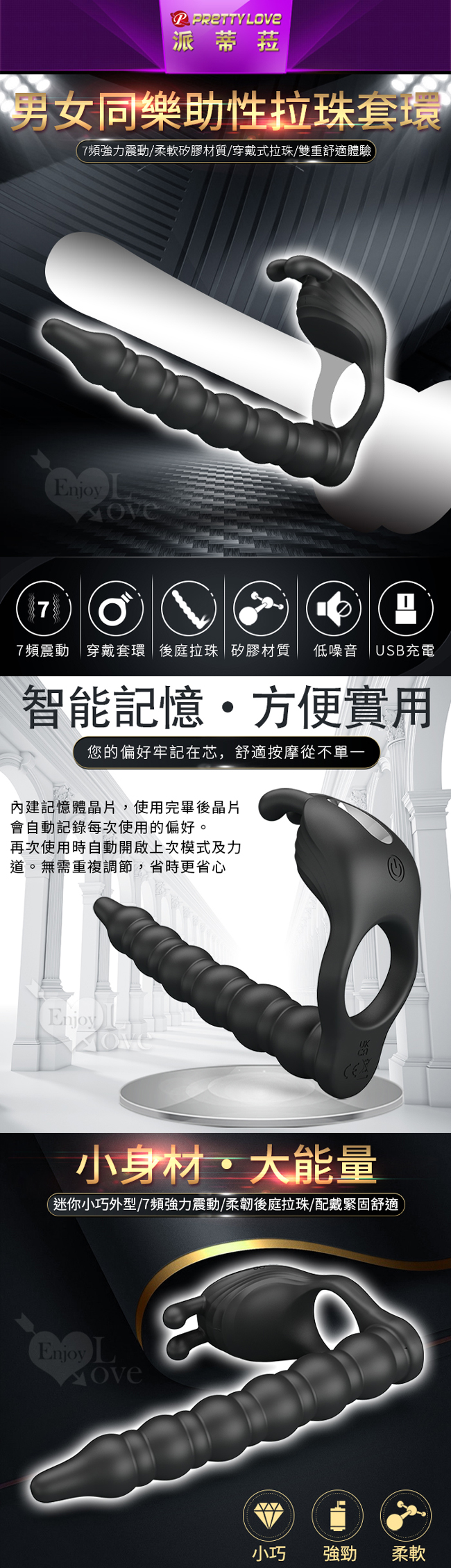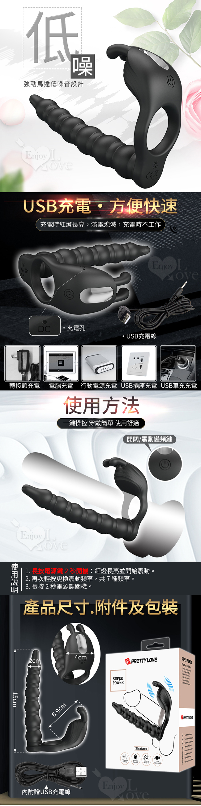 【商品名稱】 布萊尼克7頻震動後庭拉珠-黑