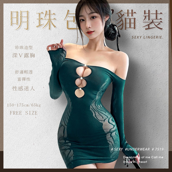 【商品名稱】 水月明珠修身包臀貓裝-7519