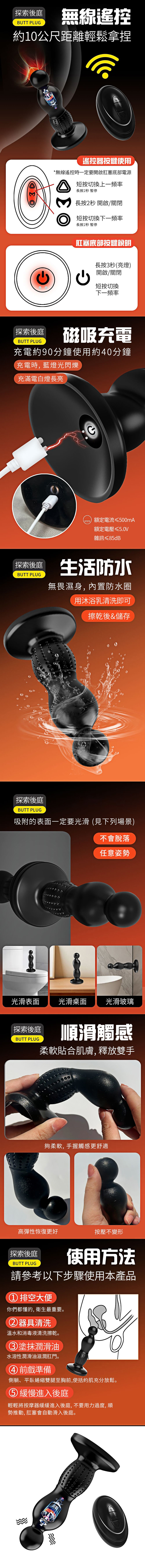 【商品名稱】 取悅探索12頻遙控震動肛塞-03