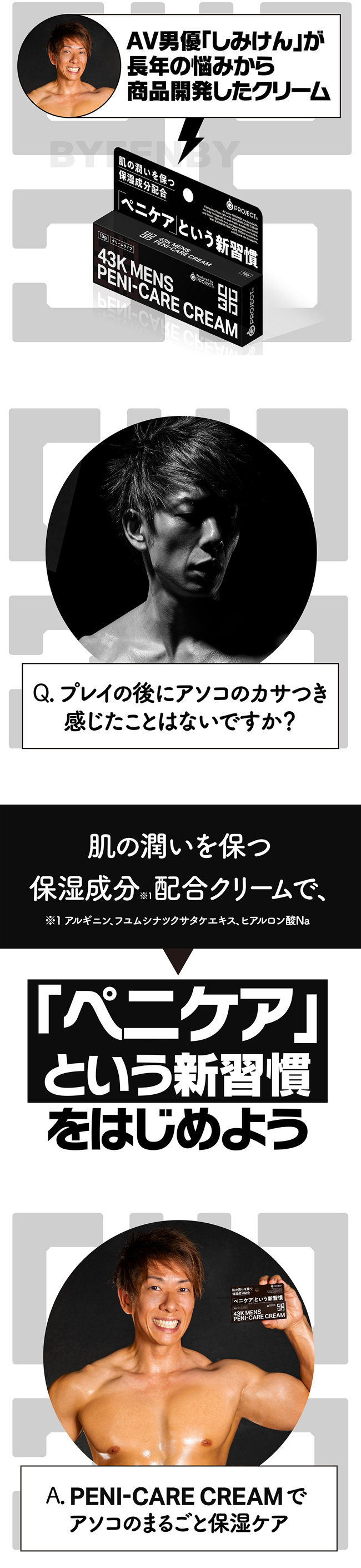 「保養沛尼絲」的新習慣!玩耍過後會不會感覺很乾燥呢?AV男優清水健合作商品「43K」專為男性打造的保濕乳液!維持肌膚的保濕成分(精氨酸、冬虫夏草、玻尿酸Na)一起開始保養沛尼絲吧!無時無刻保持滋潤的好肌膚!