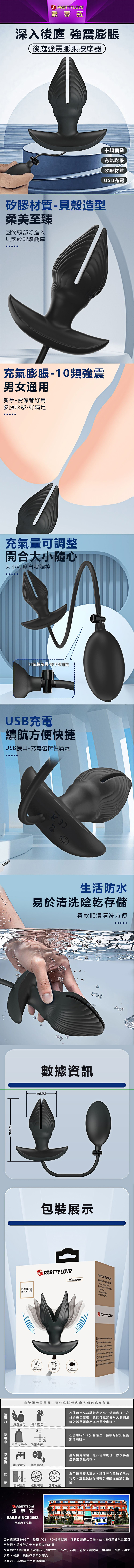 【商品名稱】 曼森10頻貝殼震動充氣膨脹後庭