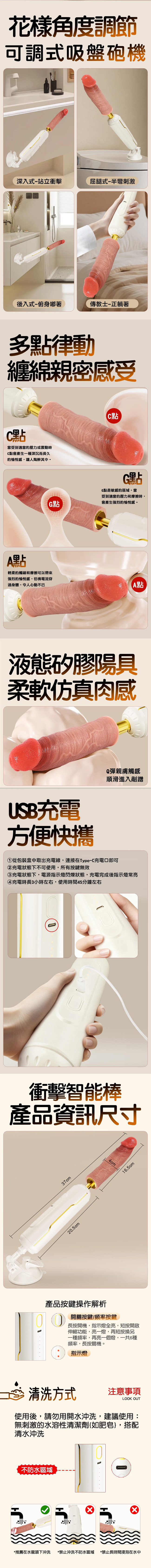 【商品名稱】 強悍暴風式6頻智能吸盤衝擊炮機(可單控或APP遙控)