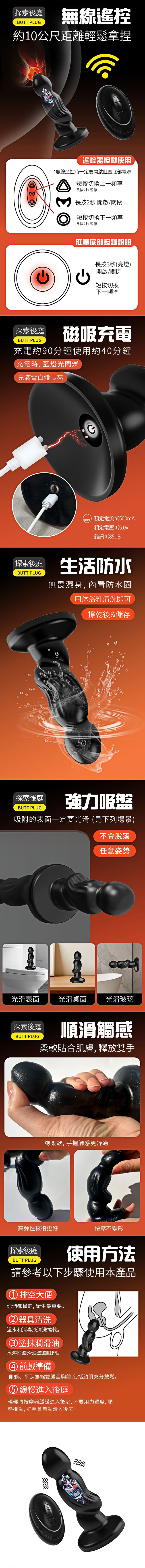 【商品名稱】 取悅探索12頻遙控震動肛塞-01