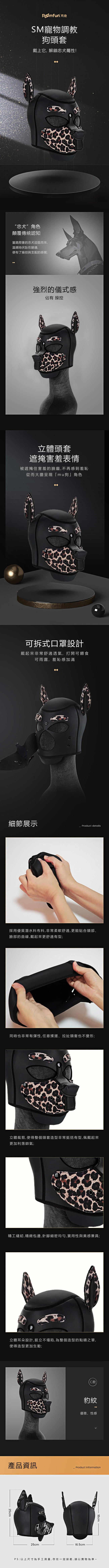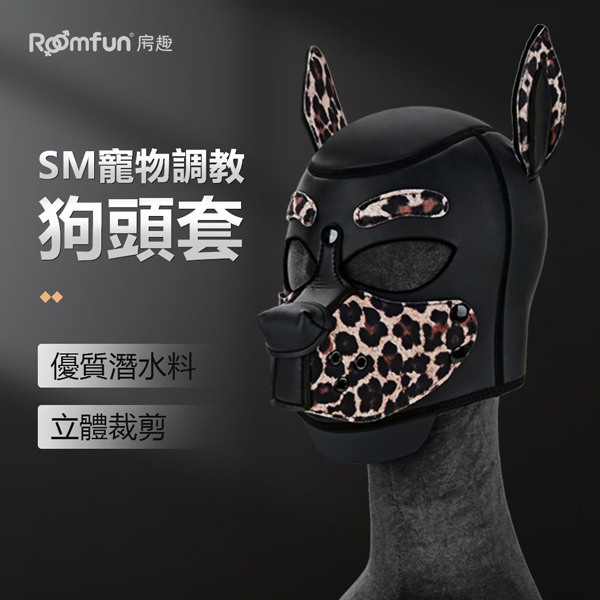 【商品名稱】 SM寵物調教狗頭套-豹紋款