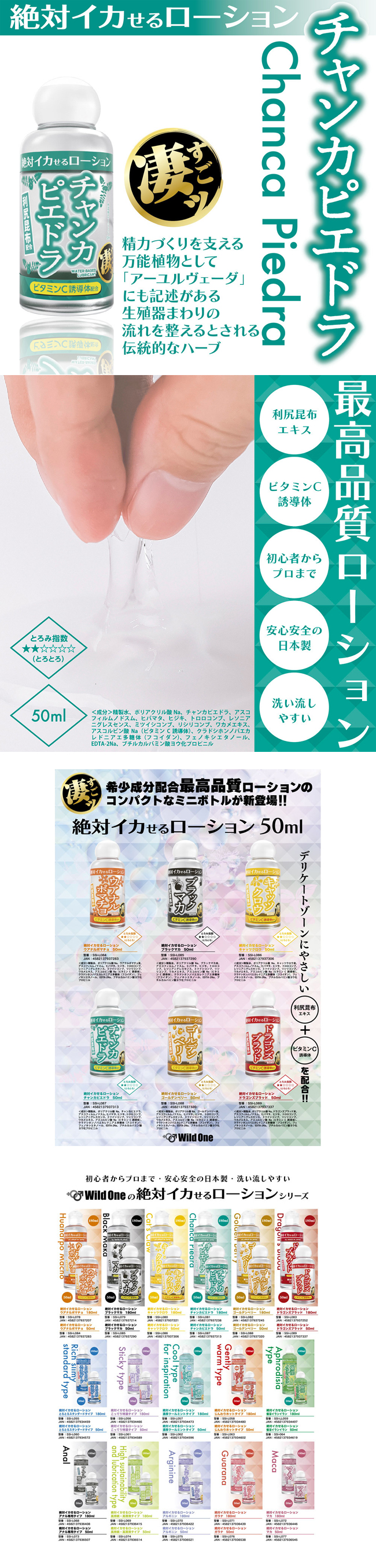 絕對高潮潤滑液系列,含利尻昆布提取物,含維生素C誘導體。