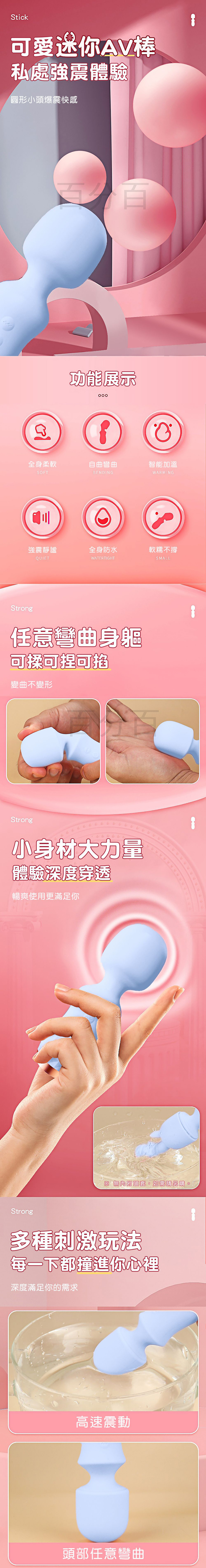 【商品簡介】 .迷你AV棒,輕鬆享受你的潮吹夜 .圓形小頭舒適激震 .柔軟棒體自由彎曲 .體驗深度穿透 .靜音設計 .智能加溫 .USB充電.....