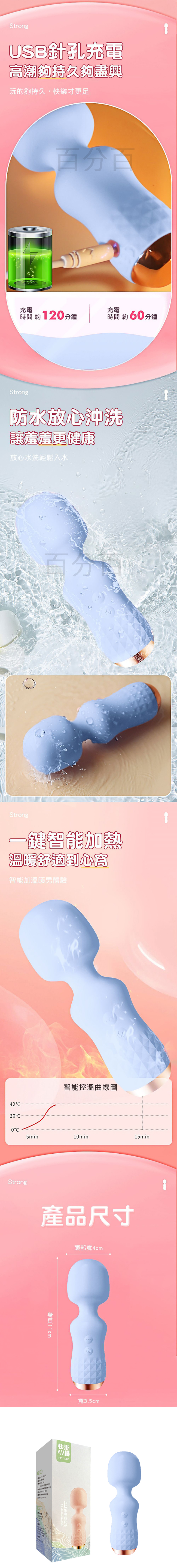 【商品名稱】 快潮10頻加溫小巧AV震動棒-藍